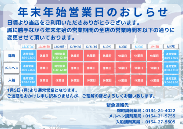 【★2025年度 年末年始営業日のお知らせ★】